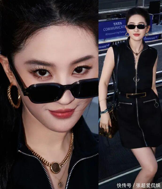 刘亦菲在F1赛场身着LV黑色无袖短裙,金属腰带束出紧致腰线,高马尾与墨镜突出肩颈骨骼轮廓,四肢纤细无赘肉,肤色白皙透亮,大家都在惊叹“刘亦菲瘦了!”