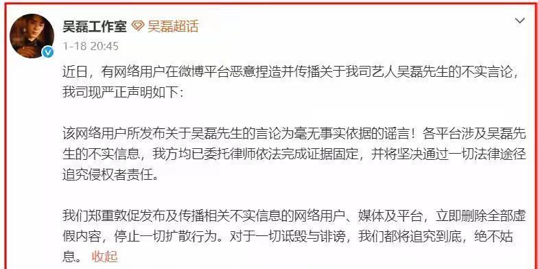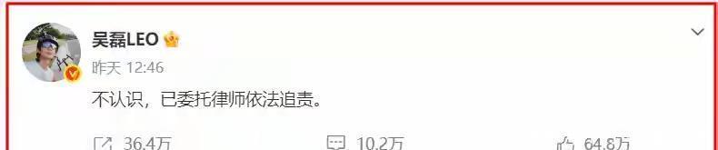 1号午间,吴磊本人更是干脆利落发个字:“不认识,已委托律师依法追责”。