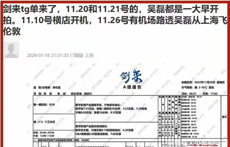 粉丝也没闲着,直接扒出《剑来》剧组的通告单:2025号那天,吴磊从早𰱪点拍到深点,全程待在浙江建德剧组,IP地址和行程能对上,压根没可能飞澳门,直接戳穿了白珊珊最核心的时间线谎言。